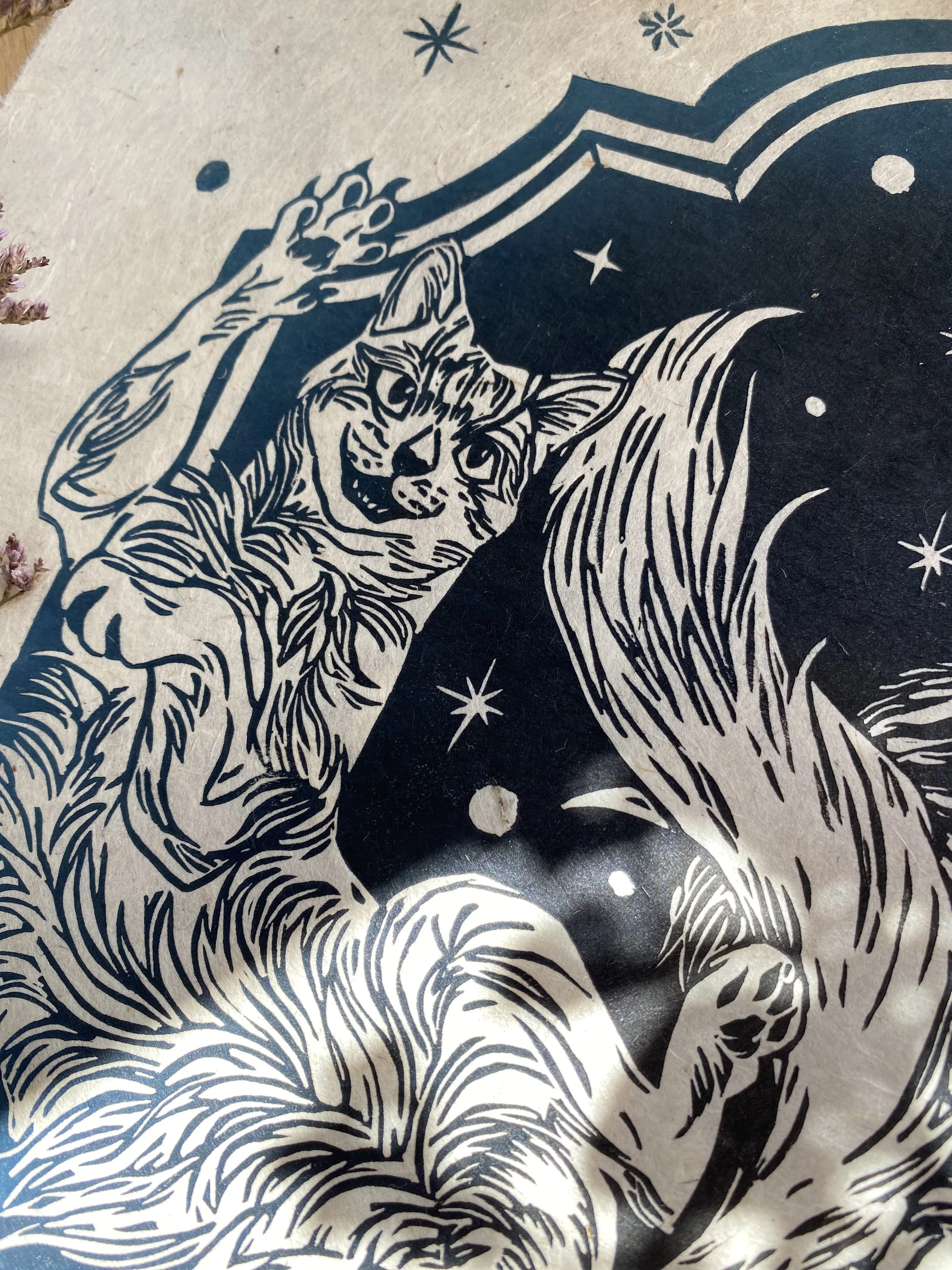 Handmade linoprint.
