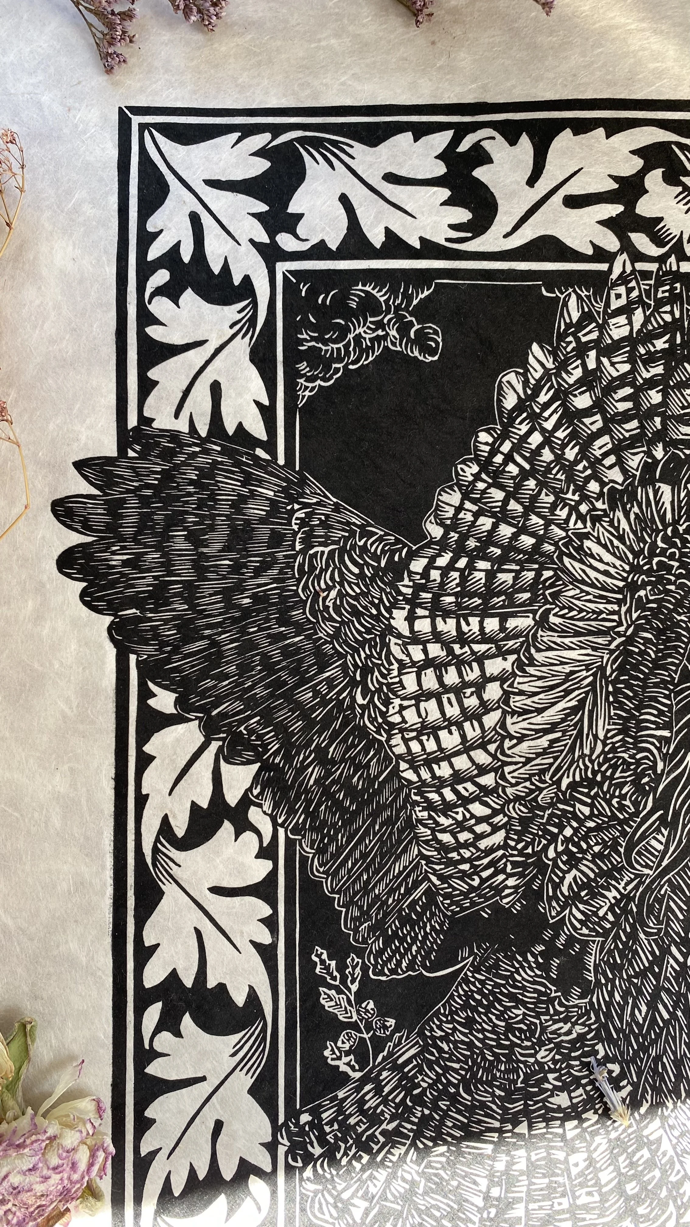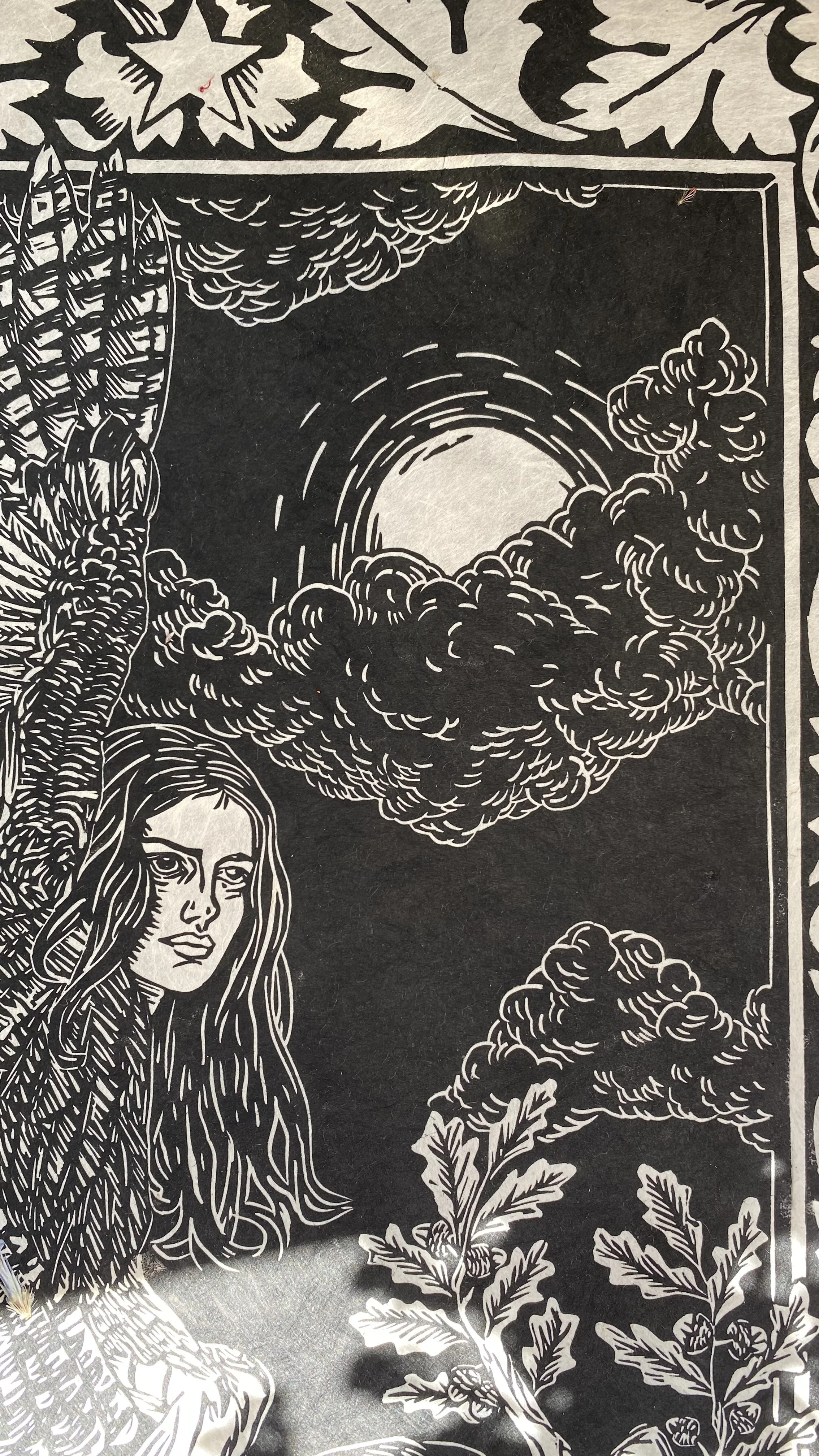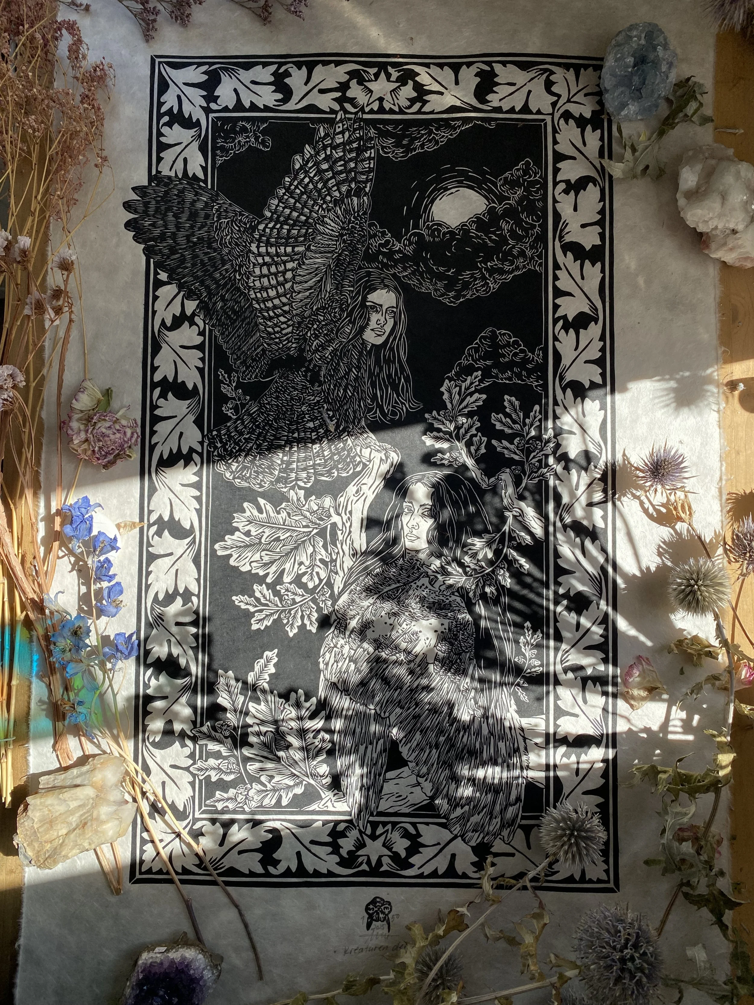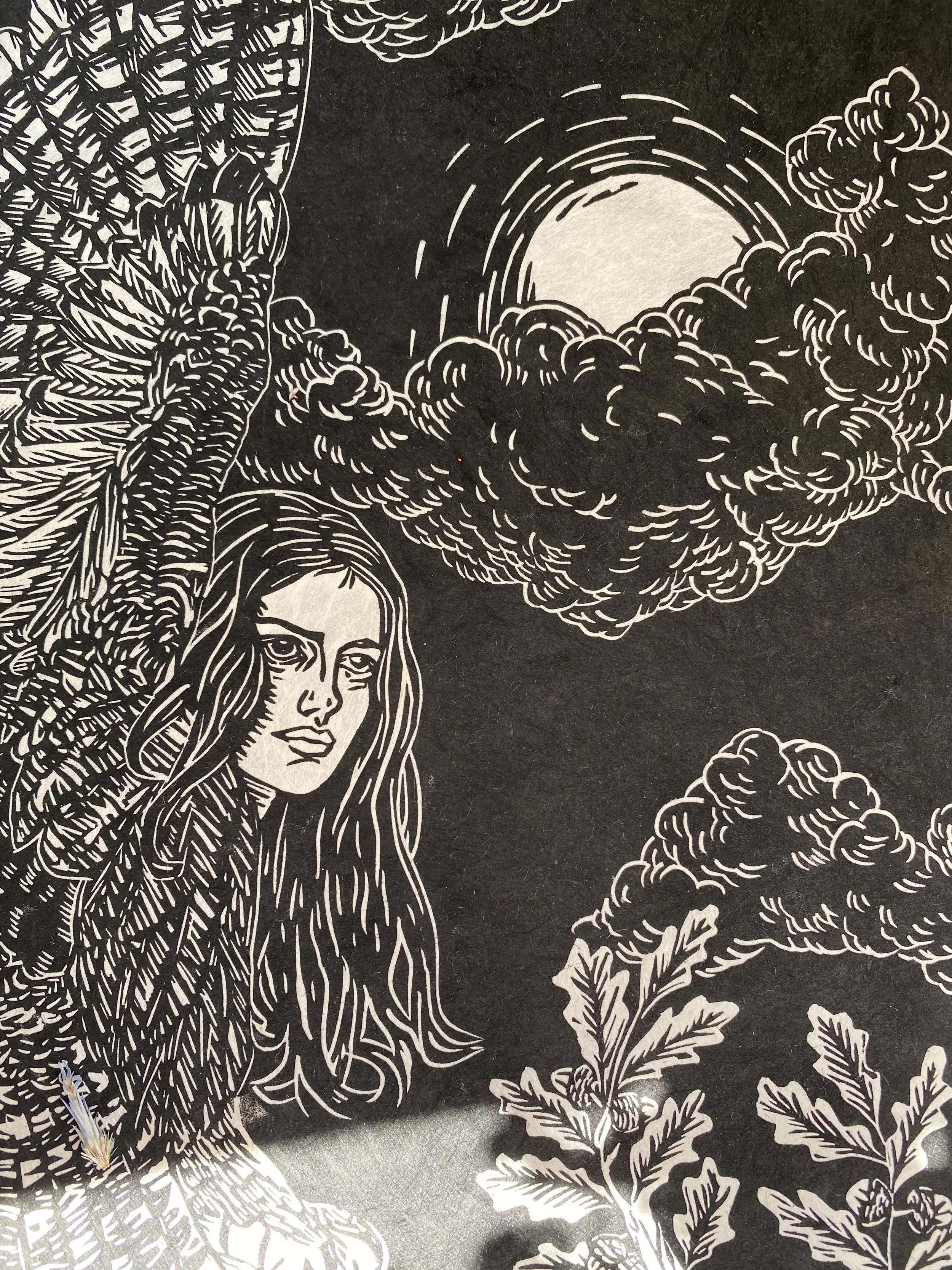 The linocut and print is a handcrafted medium, so colours as well as details, such as handmade paper, may vary slightly.