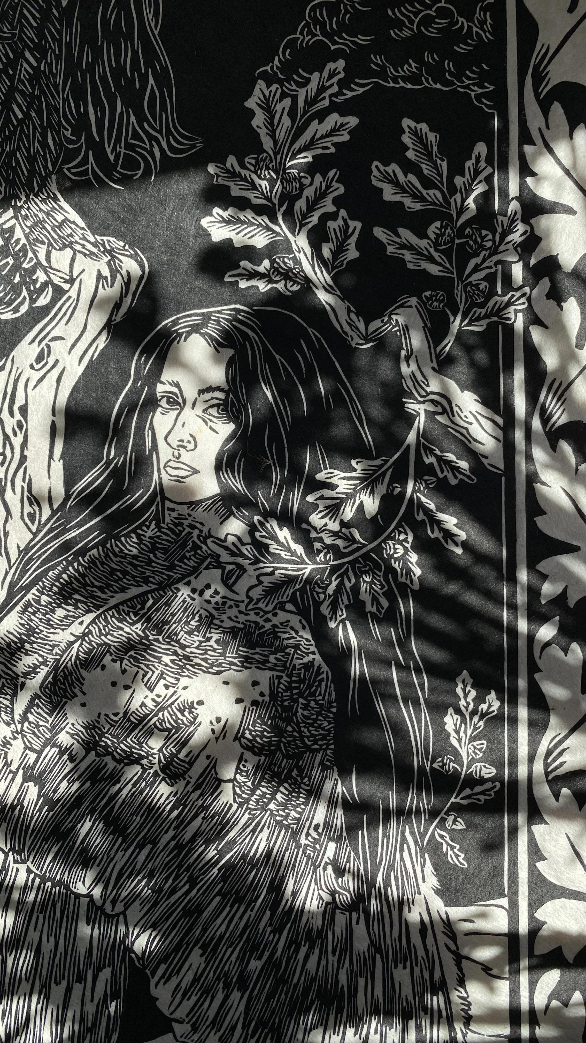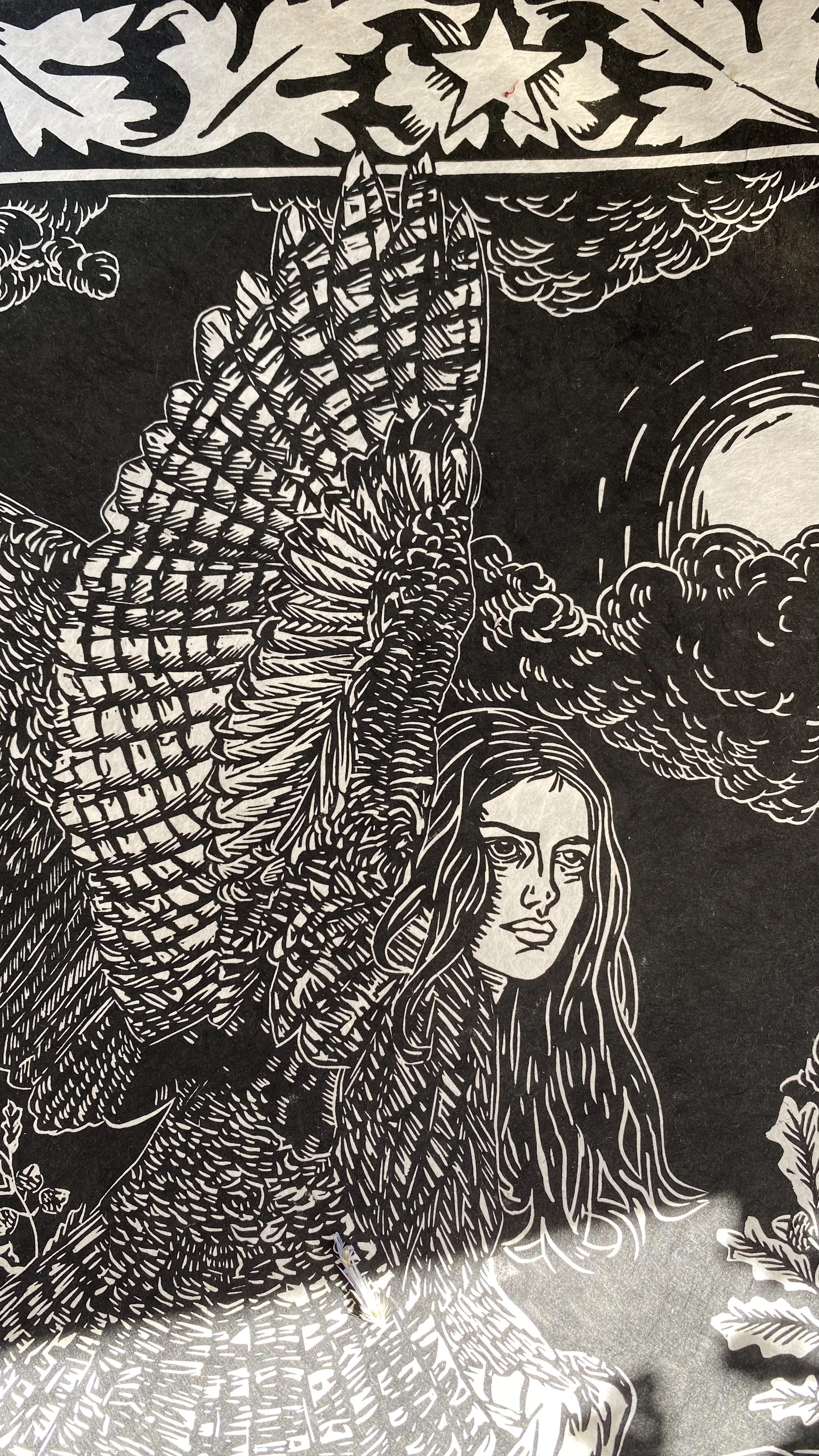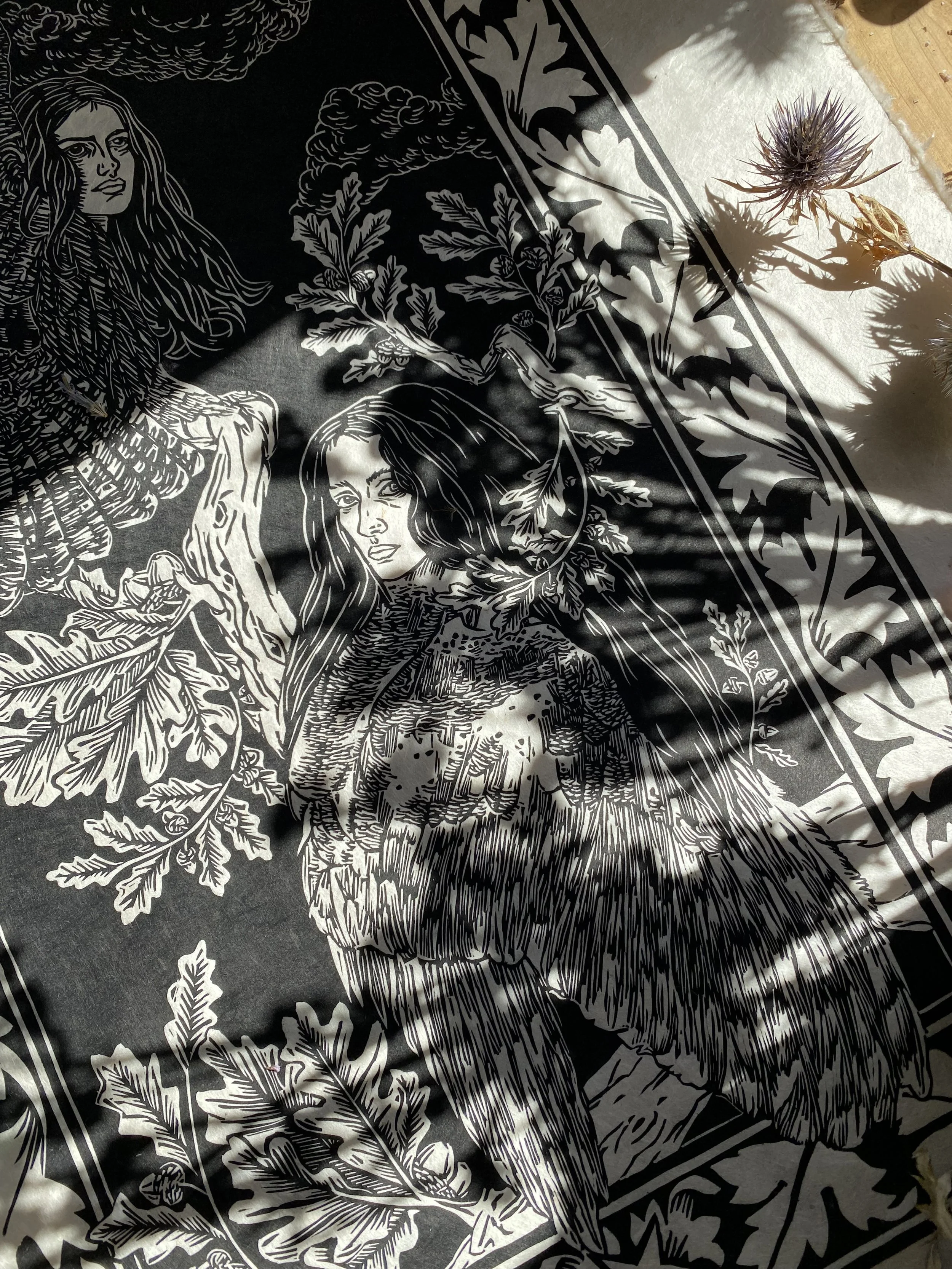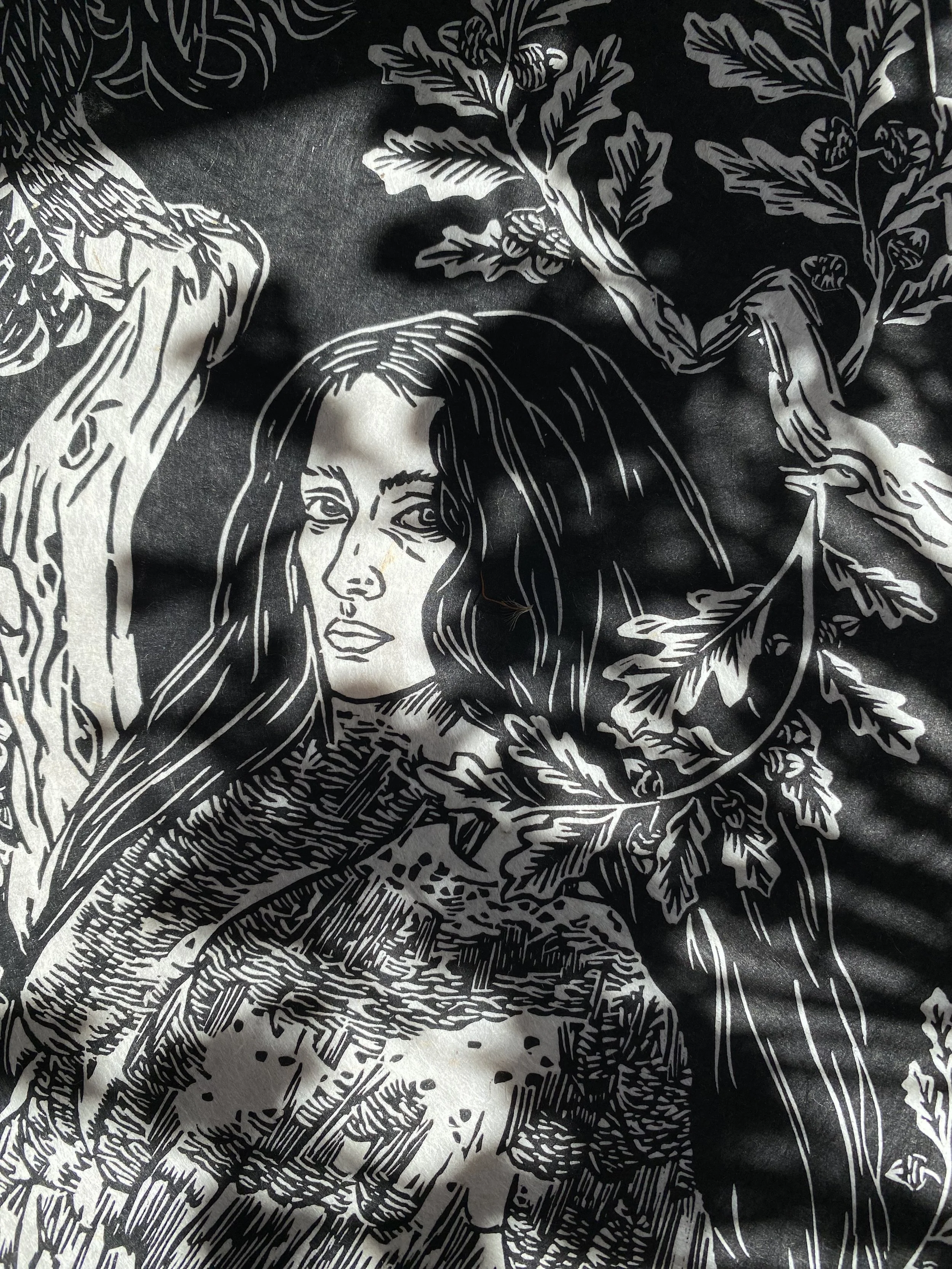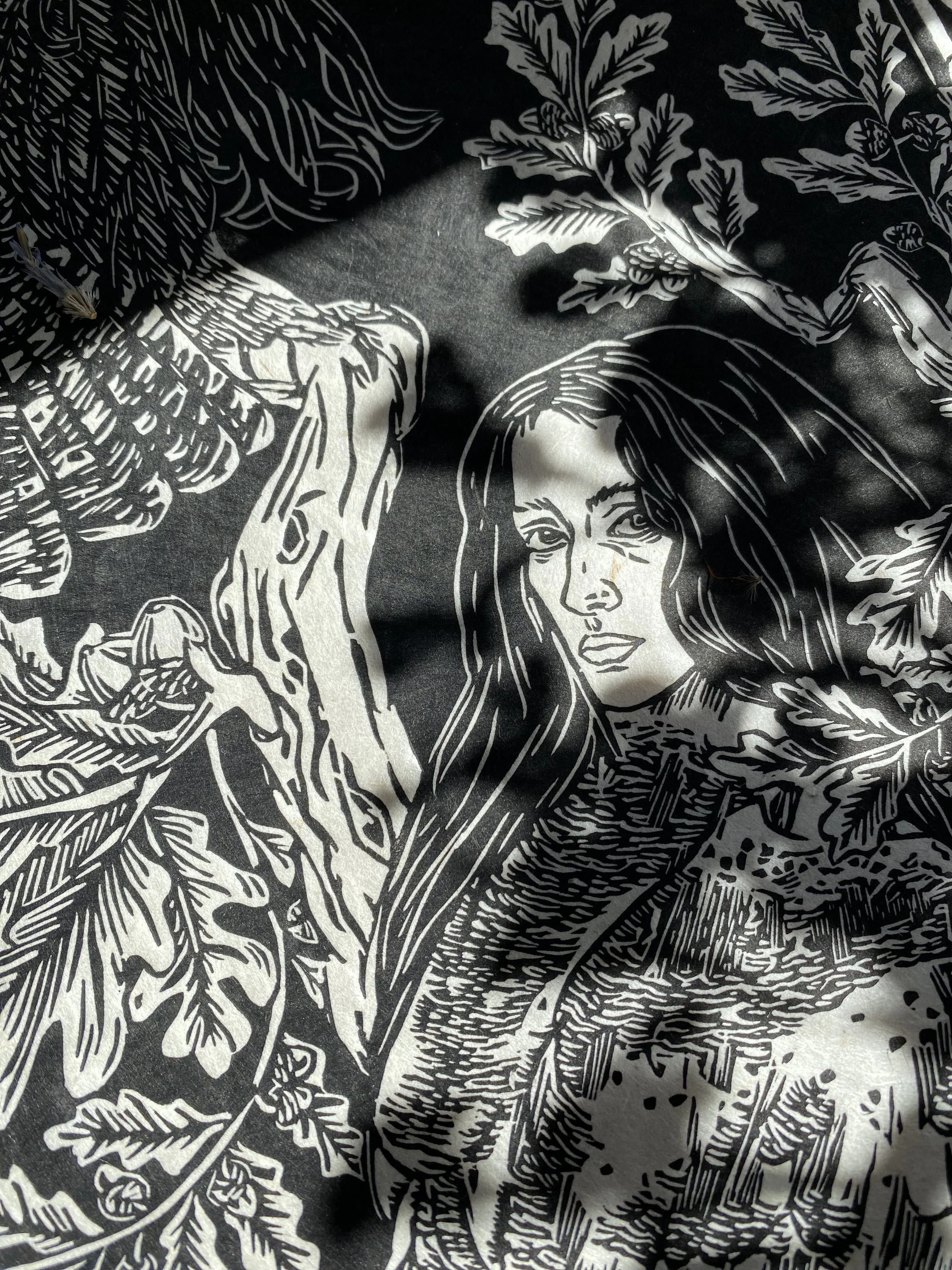 The linocut and print is a handcrafted medium, so colours as well as details, such as handmade paper, may vary slightly.